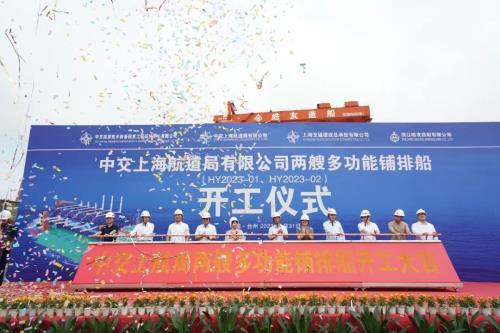 本次开工建造的两艘多功能铺排船由上航局投资建造,是目前全球功能最齐全、自动化程度最高、铺排宽度最大的绿色智能工程船,建成后将成为中交集团铺排领域的旗舰船舶。本船总长约116米,为单甲板、钢质焊接及首楼式非机动多功能铺排船,适用于我国沿海浅滩至深水等不同海况环境条件下的围堰造陆、水上建筑物工程的“软体排铺设”与“袋装砂充灌”施工,是我国填海造陆的关键性海工大型装备。