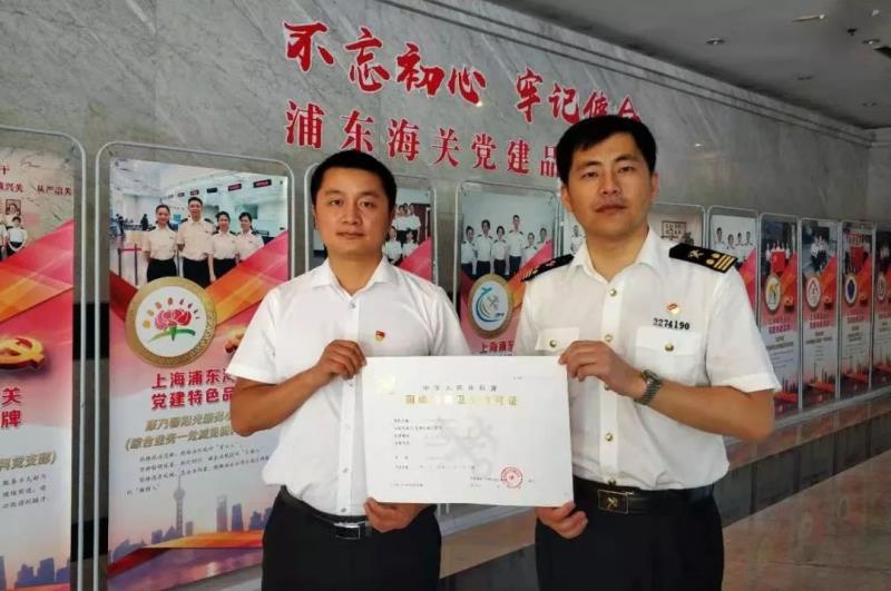 中交上海航道装备工业有限公司成功取得了浦东地区首张《中华人民共和国国境口岸卫生许可证》,并成为“模范示范点”。